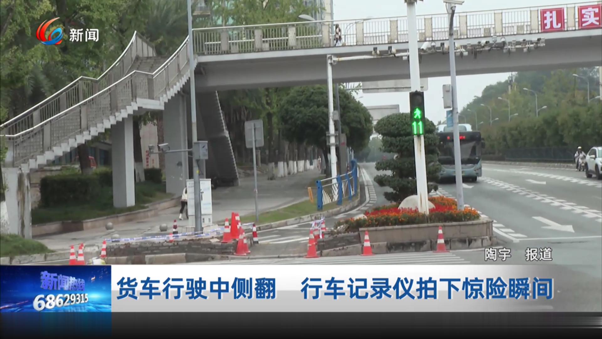 货车行驶中侧翻 行车记录仪拍下惊险瞬间