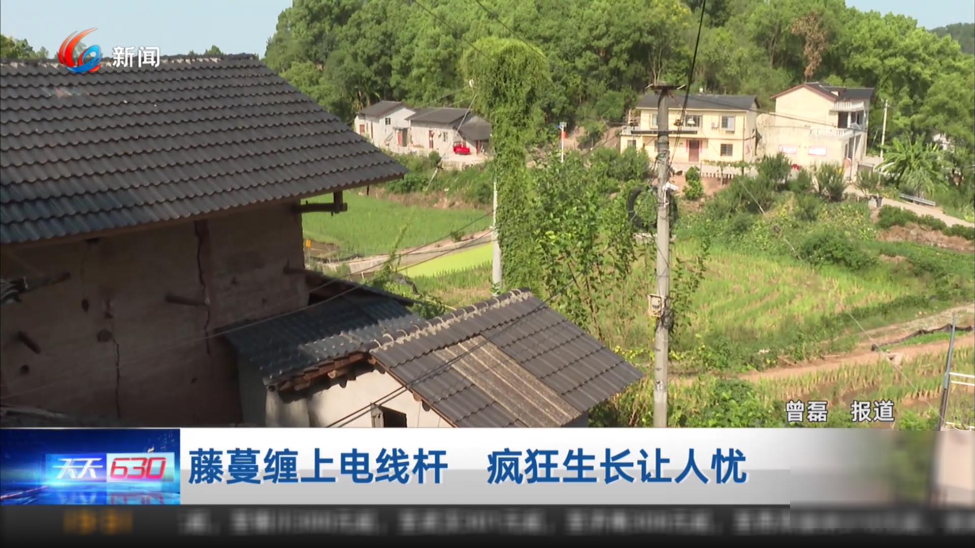 巴南区的村民徐万恒家门口有一根电线杆,因缠绕的藤蔓疯狂生长,形成了一道独特而让人担忧的风景。