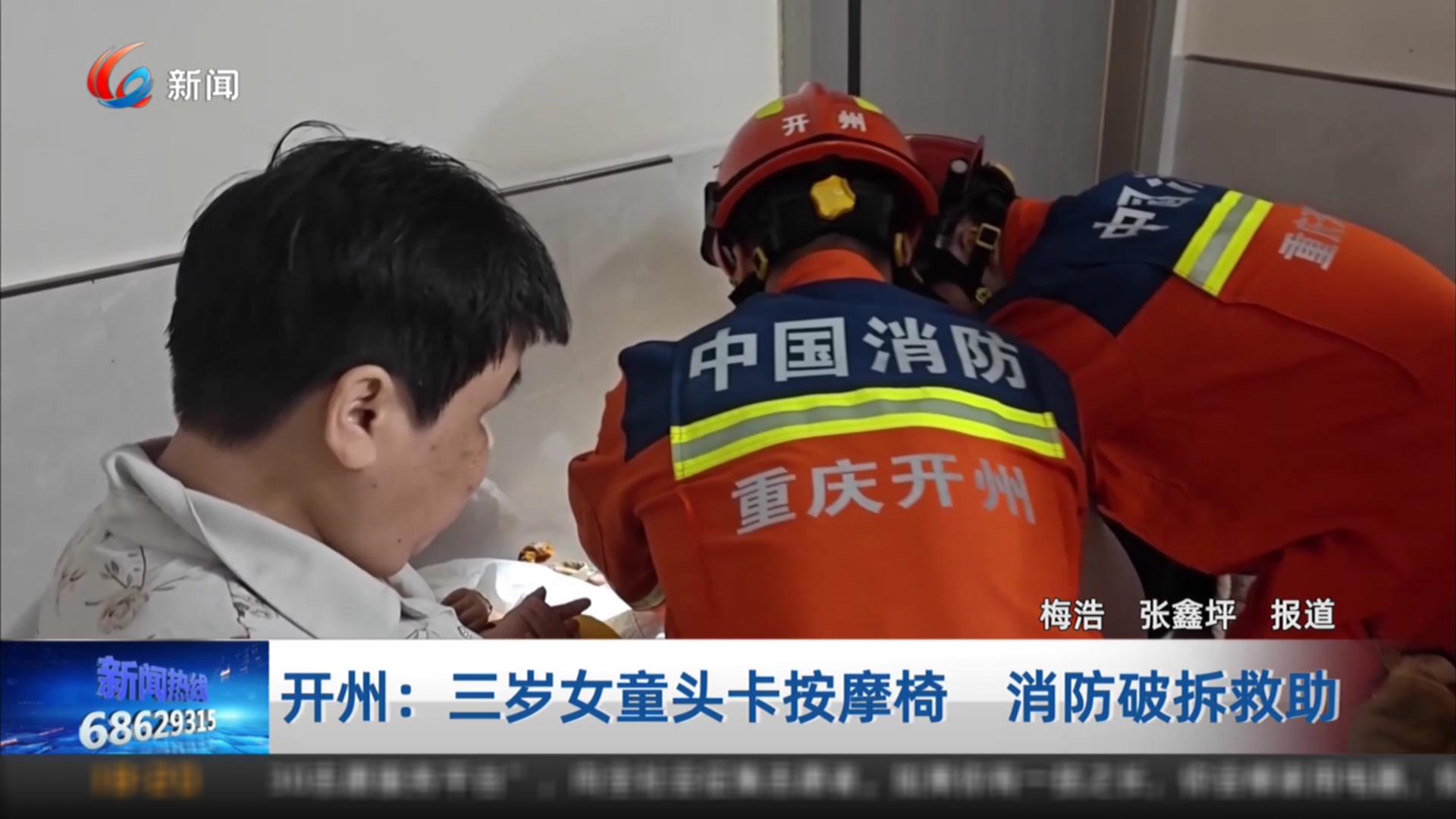 开州:三岁女童头卡按摩椅 消防破拆救助