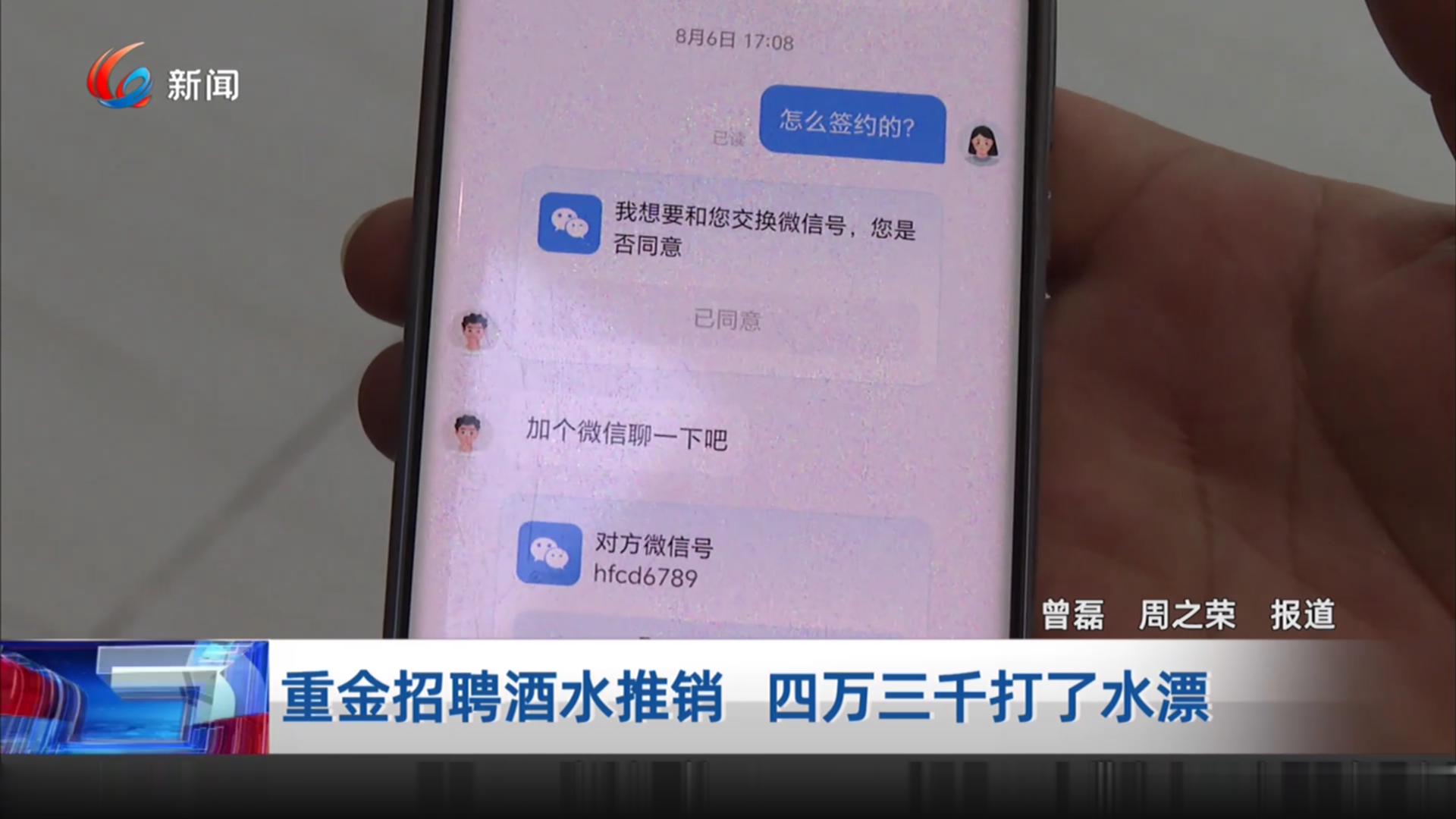 重金来渝招聘酒水推销,本打算半年内回本赚钱。不料推销员没见到,四万三的介绍费还打了水漂。最近,四川乐山的张先生就碰到了这样的烦心事。