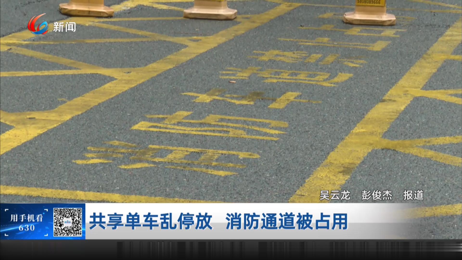 小区车库出入口的消防通道,被无序停放的共享单车占用。居民担心存在安全隐患。