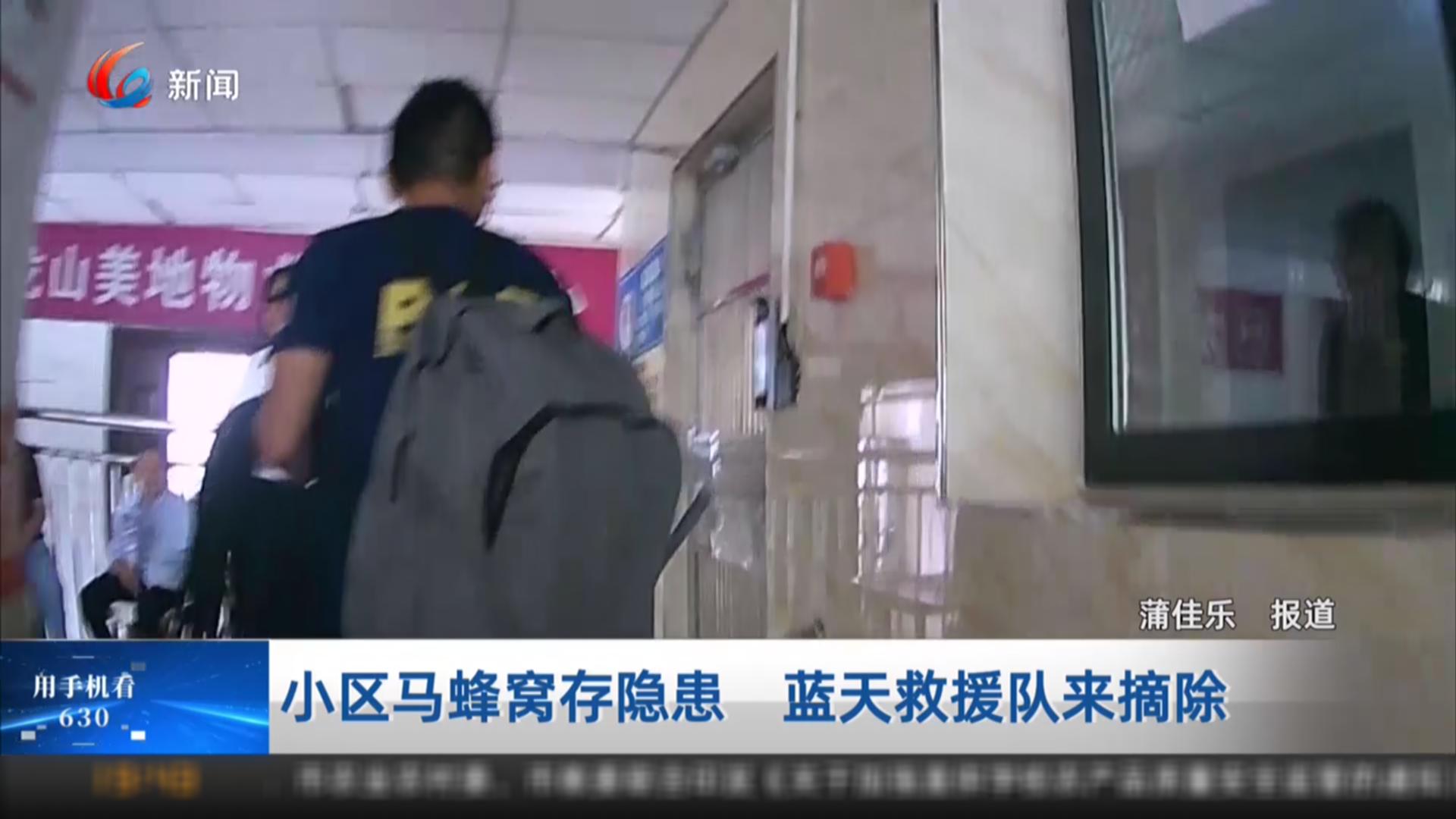 小区马蜂窝存隐患 蓝天救援队来摘除