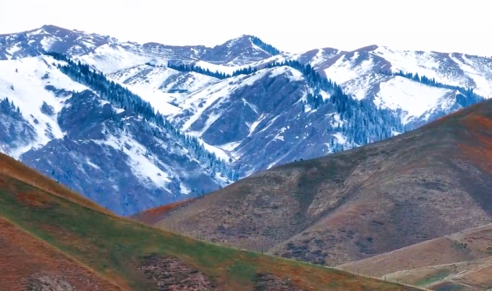 近日,在新疆伊犁哈萨克自治州特克斯县,一场初雪为阿克塔斯草原披上浪漫外衣,勾勒出令人心动的自然景致。