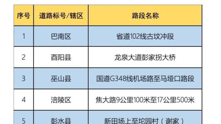 重庆公安交管部门发布国庆中秋假期事故多发点(段)及道路交通安全风险预警提示