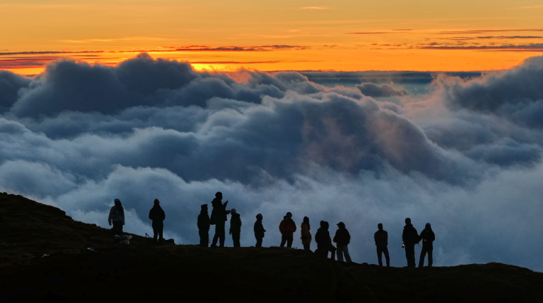 初冬时节,昆明轿子山迎来冬季星空与云海交织的壮美景观,吸引不少游客登山观赏。