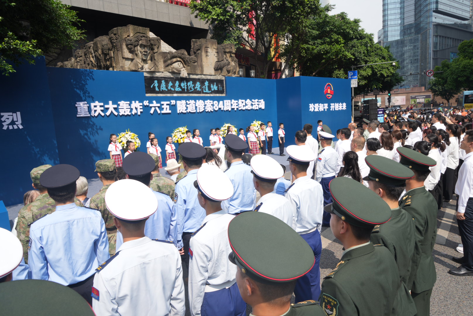 6月5日上午,“铭记历史、缅怀先烈、珍爱和平、开创未来”重庆大轰炸“六五”大隧道惨案84周年纪念活动在渝中区重庆大轰炸展馆举行。数百名来自社会各界的市民齐聚“六五”大隧道惨案遗址前,手持白菊,回溯沉痛历史,缅怀遇难同胞。