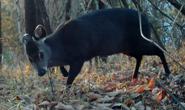 近日,重庆大巴山国家级自然保护区管理事务中心工作人员在整理收集红外相机监测数据时,发现毛冠鹿林间活动画面。