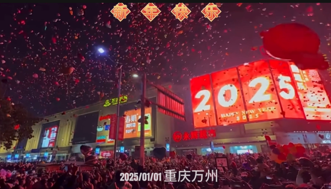 2025年元旦跨年夜当晚,随着新年倒计时钟声的敲响,万州区北滨大道万达广场附近人潮汹涌,众多年轻朋友和市民齐声倒数迎接新年的到来,大家一起放飞手中的气球,上万只气球同时升空,漫天飞舞如梦幻星河,场面震撼,跨年氛围感拉满。