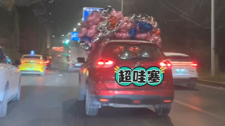 带着重庆解放碑新年钟声许愿夜气球回家,这么一大车气球,跨年夜应该过得很幸福吧!网友:我也想要一颗!