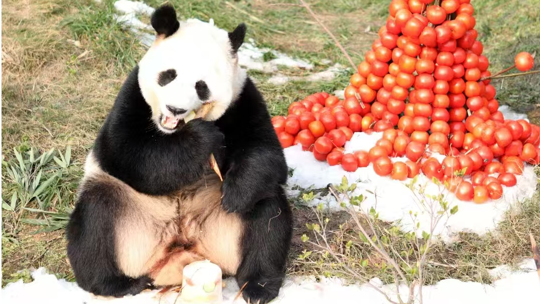 永川:四只大熊猫跨年 享用“冰雪盛宴”