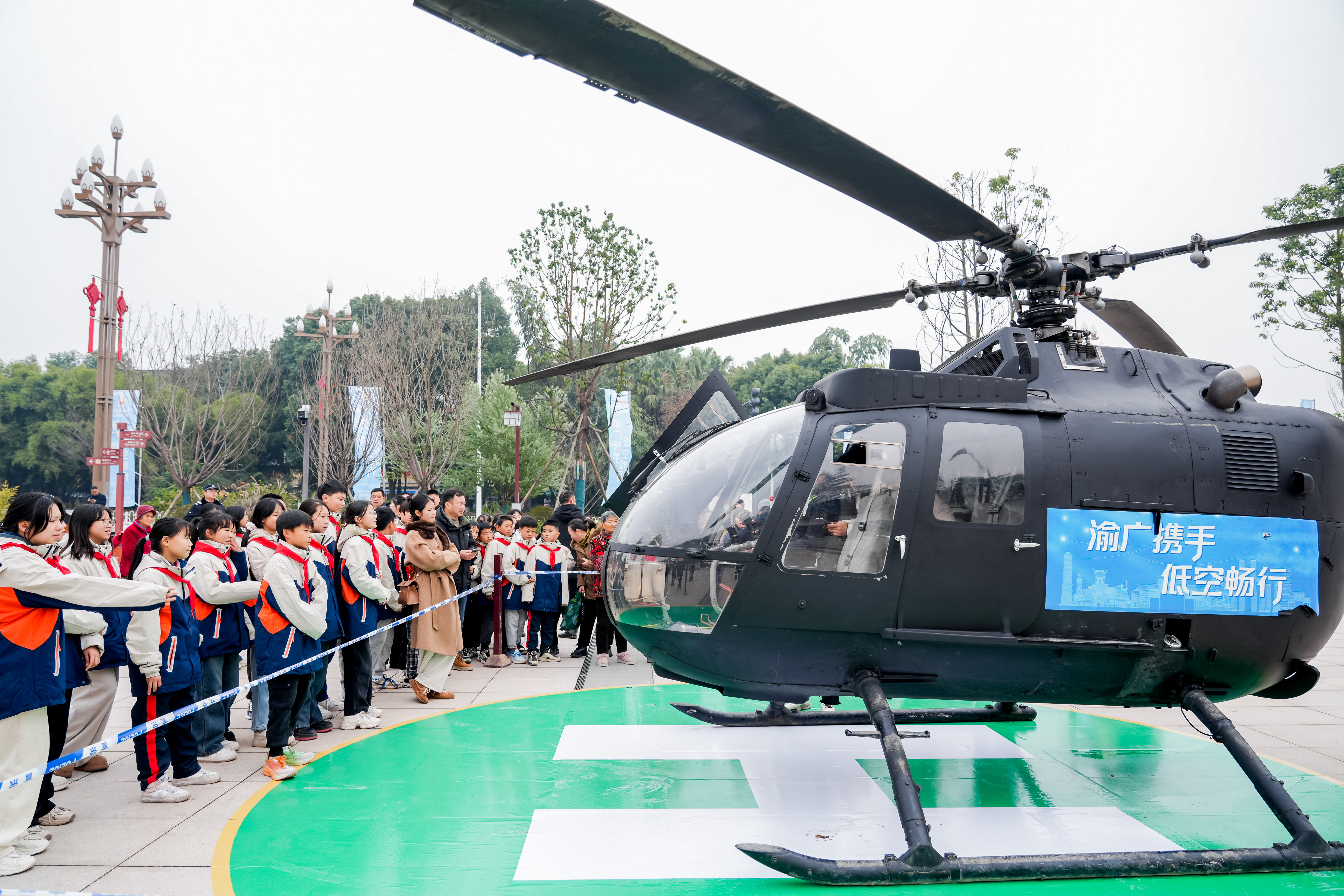 12月25日下午14时30分,伴随着直升机的轰鸣声,一架BO-105双发直升机从四川省广安市邓小平故里旅游区南门外广场起飞,前往重庆。经过约一个小时的飞行,该直升机顺利降落在重庆沙坪坝沙磁文化广场,这标志着重庆至广安往返载人红色旅游低空线路正式开通。