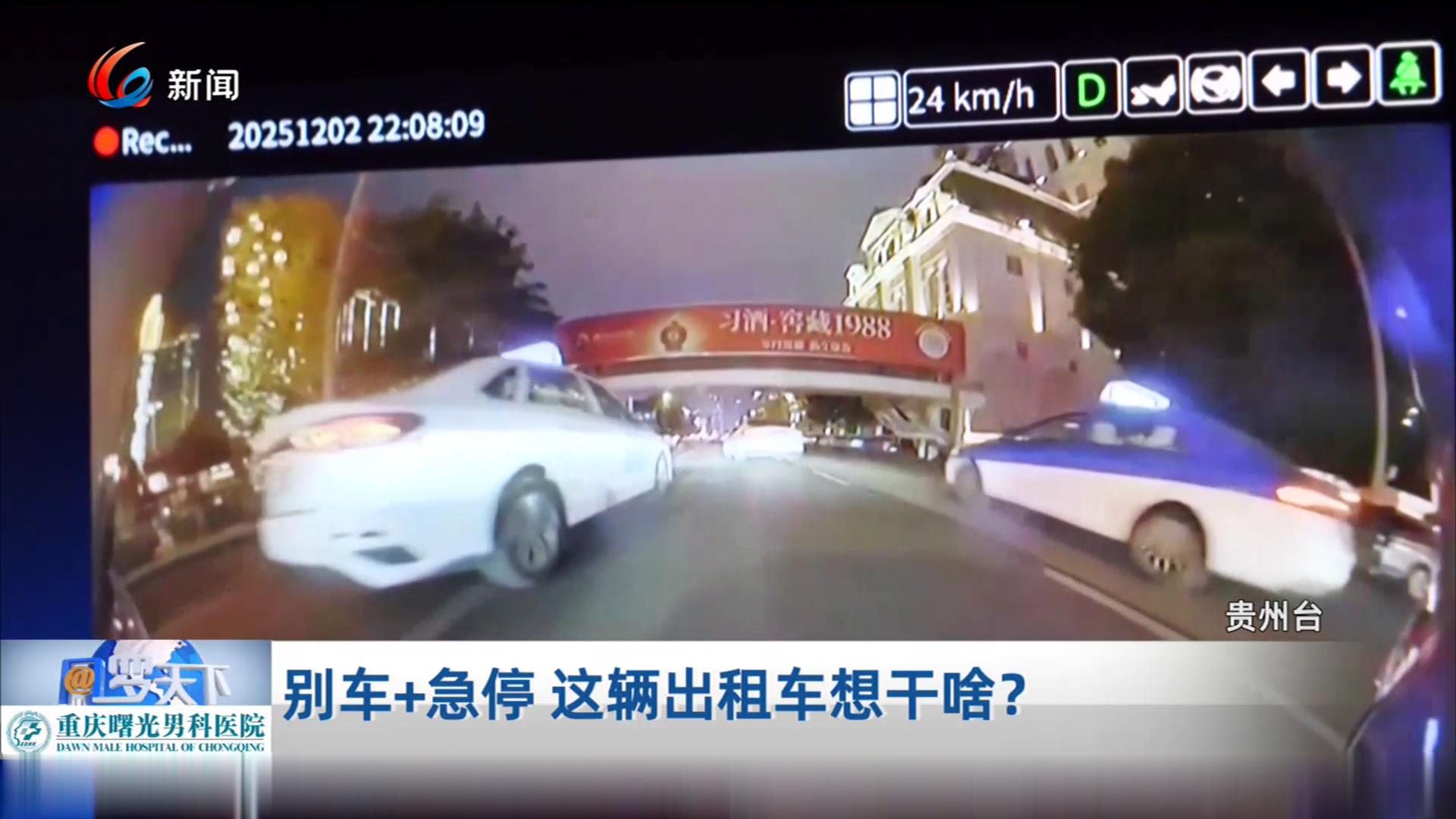 开车上路,安全第一。做到心平气和,才能一路顺畅。前两天,贵阳市民付先生就在驾驶途中,遇到了一辆故意找茬儿的出租车。它强行超车后故意别车,还突然来了个急停,险些引发追尾事故。