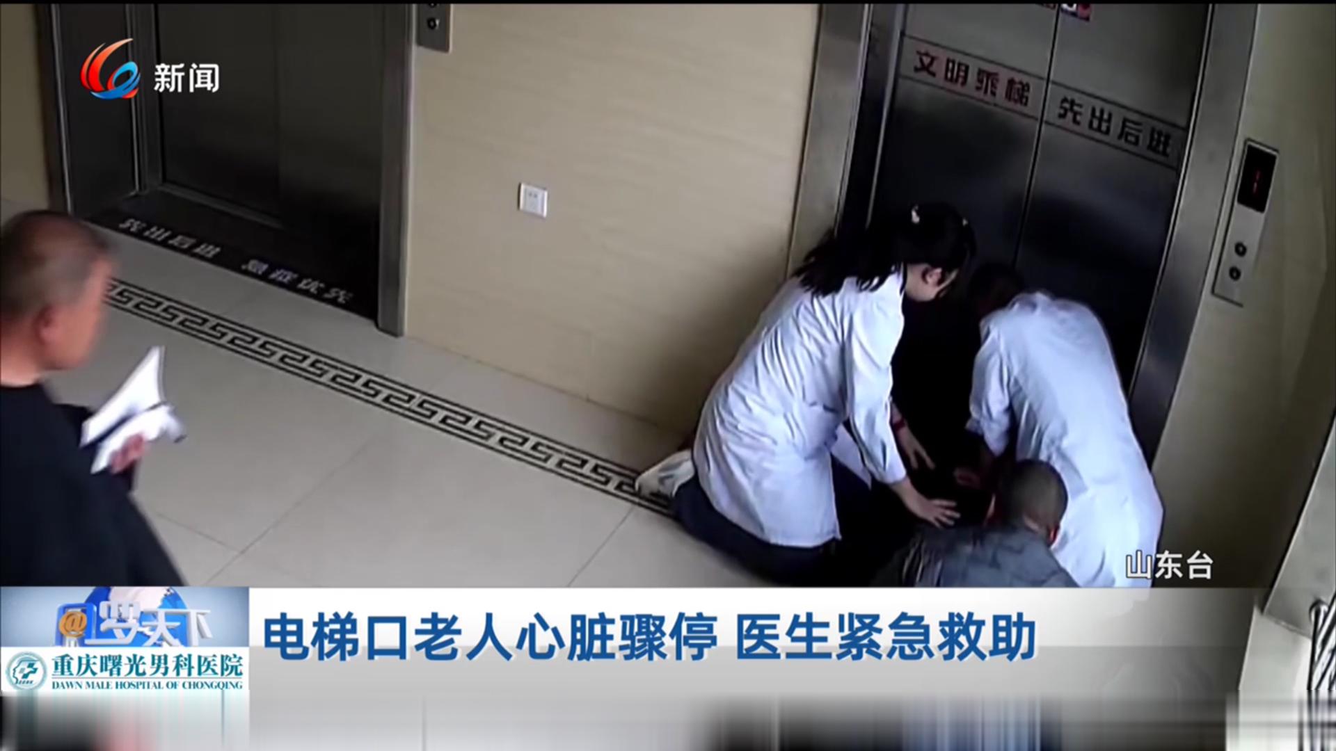电梯口老人心脏骤停 医生紧急救助