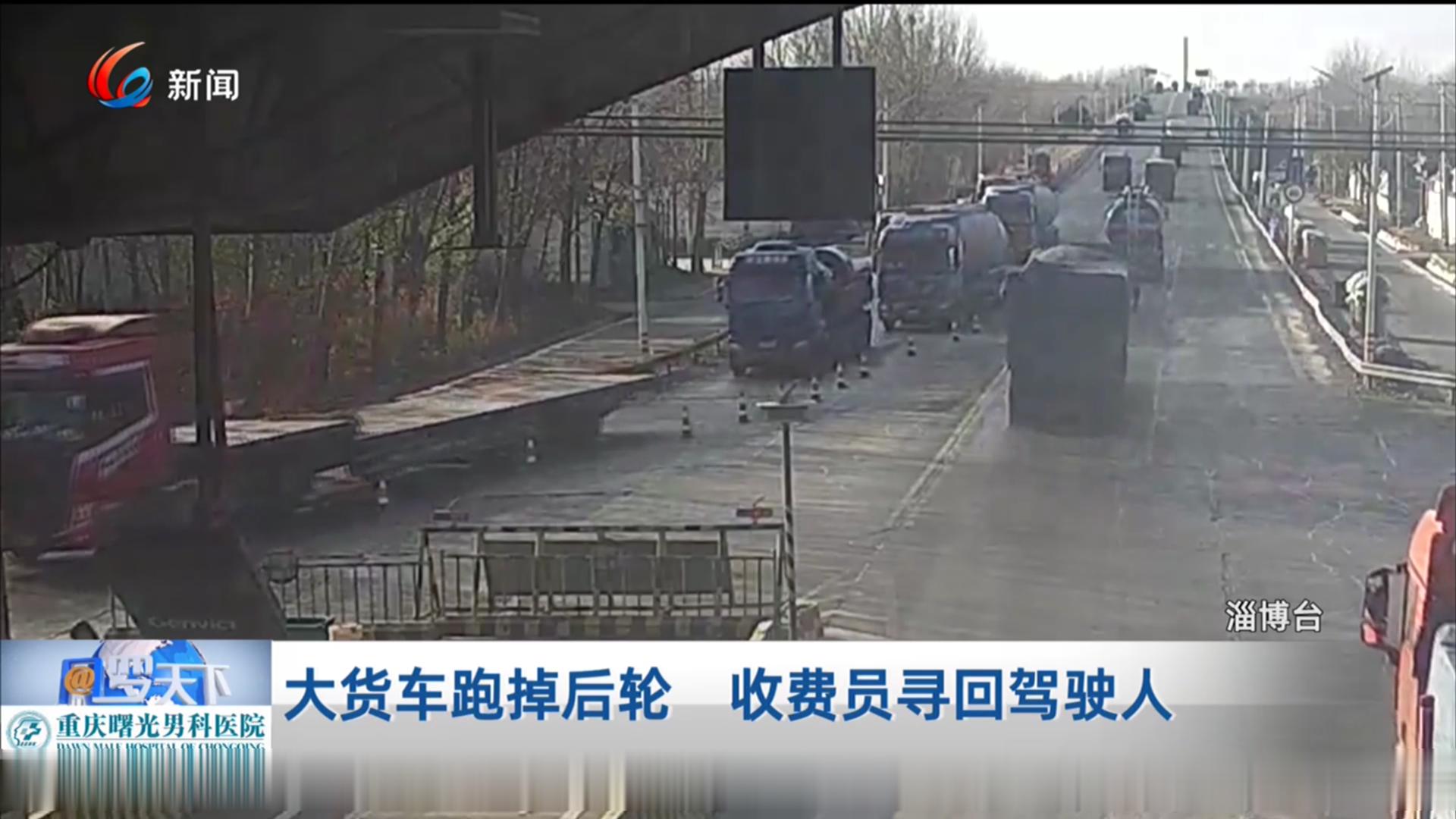 前两天,在山东淄博高青县,一辆大货车通过黄河大桥收费站时,车上的一个轮子突然掉落。