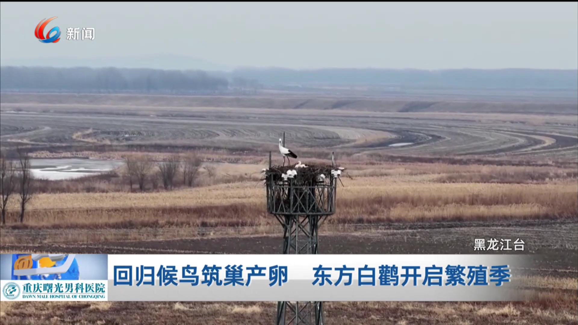 回归候鸟筑巢产卵 东方白鹳开启繁殖季