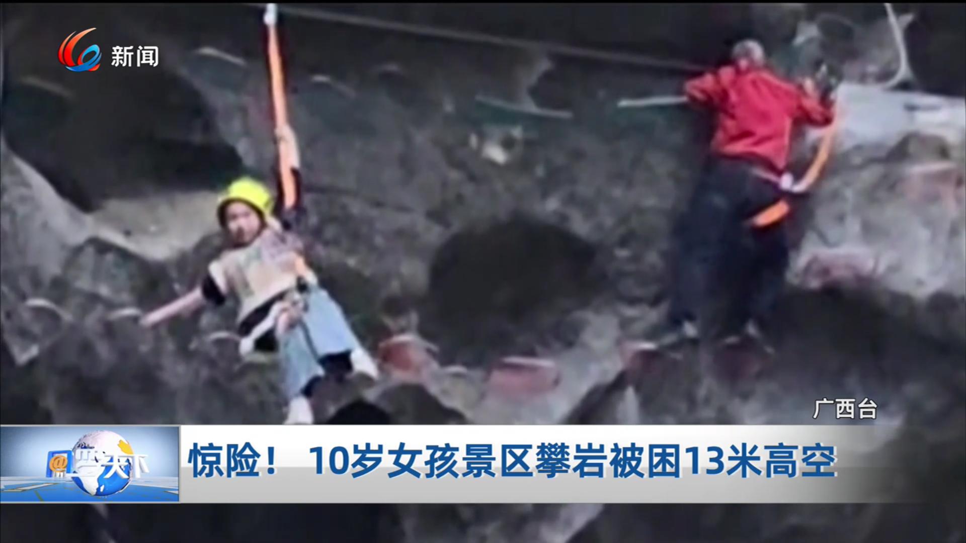 惊险! 10岁女孩景区攀岩被困13米高空