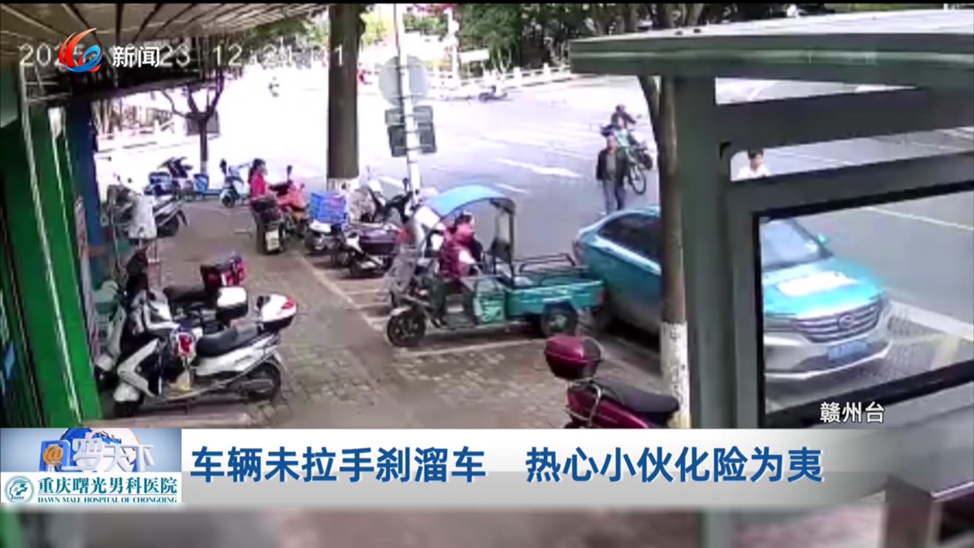 近日,在江西赣州上犹县,一辆停在路边的车辆因未拉手刹向后滑行。好在一位热心小伙及时出手,化险为夷。