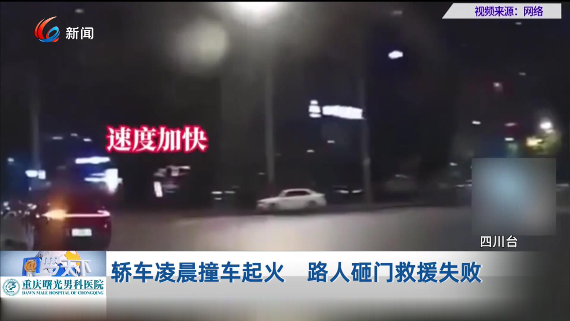 轿车凌晨撞车起火 路人砸门救援失败(1)