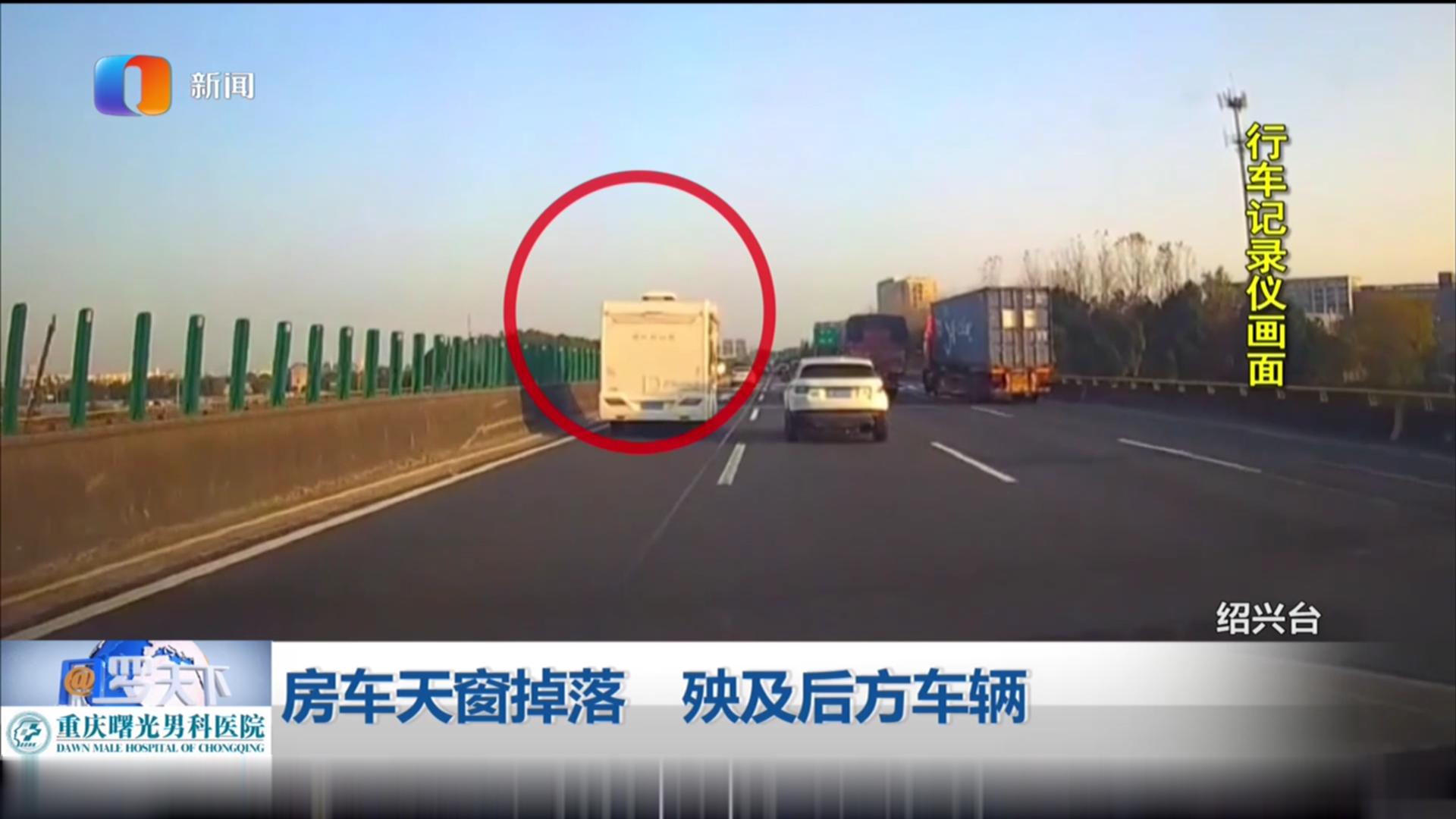 房车天窗掉落 殃及后方车辆
