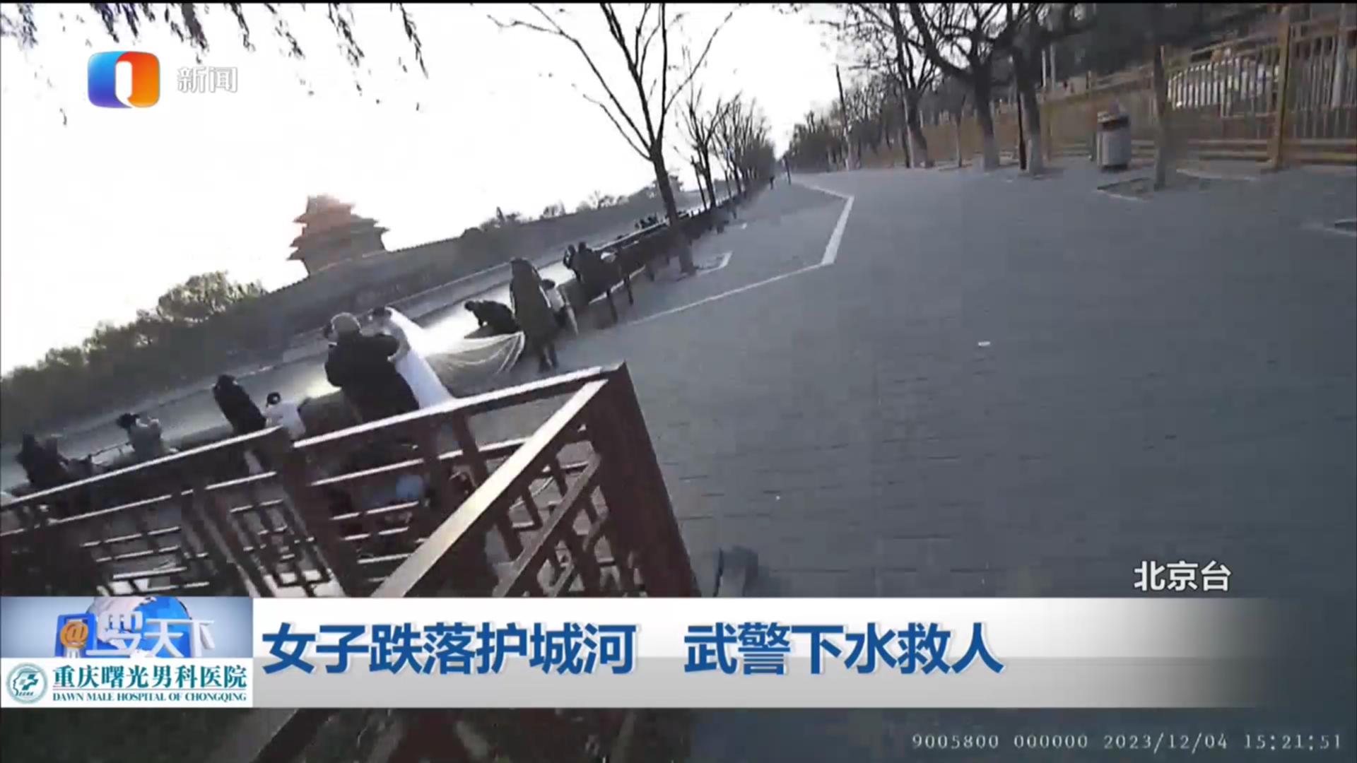 女子跌落护城河 武警下水救人