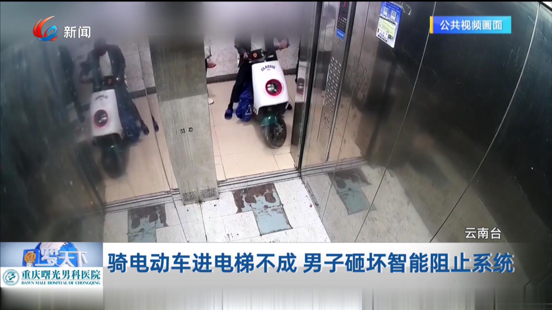 骑电动车进电梯不成 男子砸坏智能阻止系统