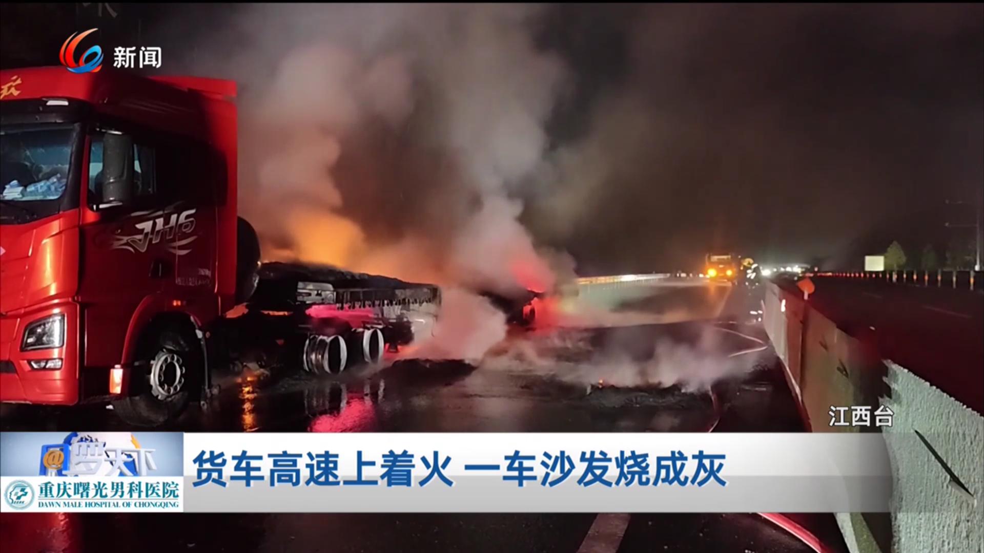 货车高速上着火 一车沙发烧成灰