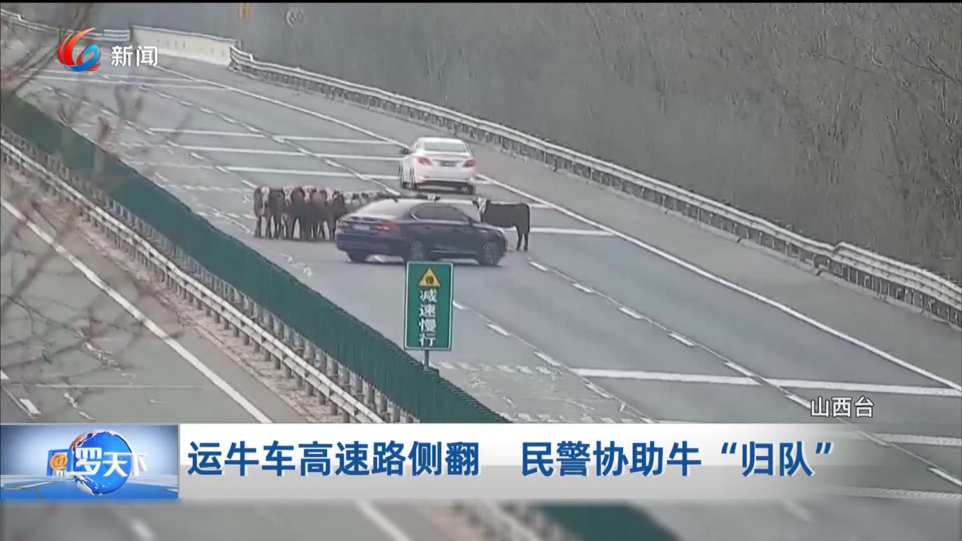 运牛车高速路侧翻 民警协助牛“归队”