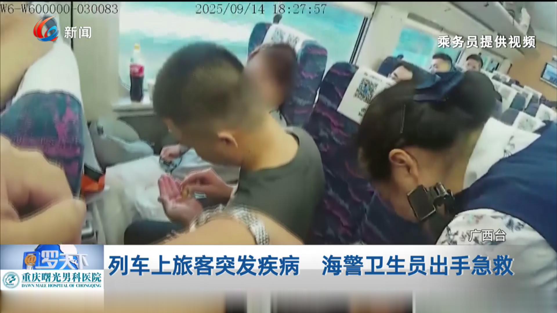 日前,在一列开往广西北海的动车上,一名旅客突发疾病。得知消息后,防城港海警局卫生员韦海旺背着随身携带的急救包,迅速前往5号车厢。