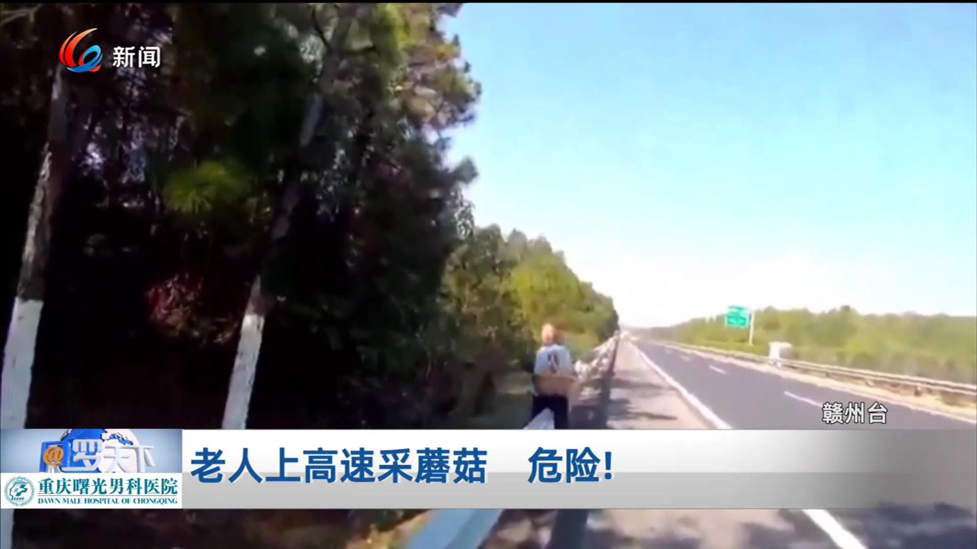 老人上高速采蘑菇 危险!