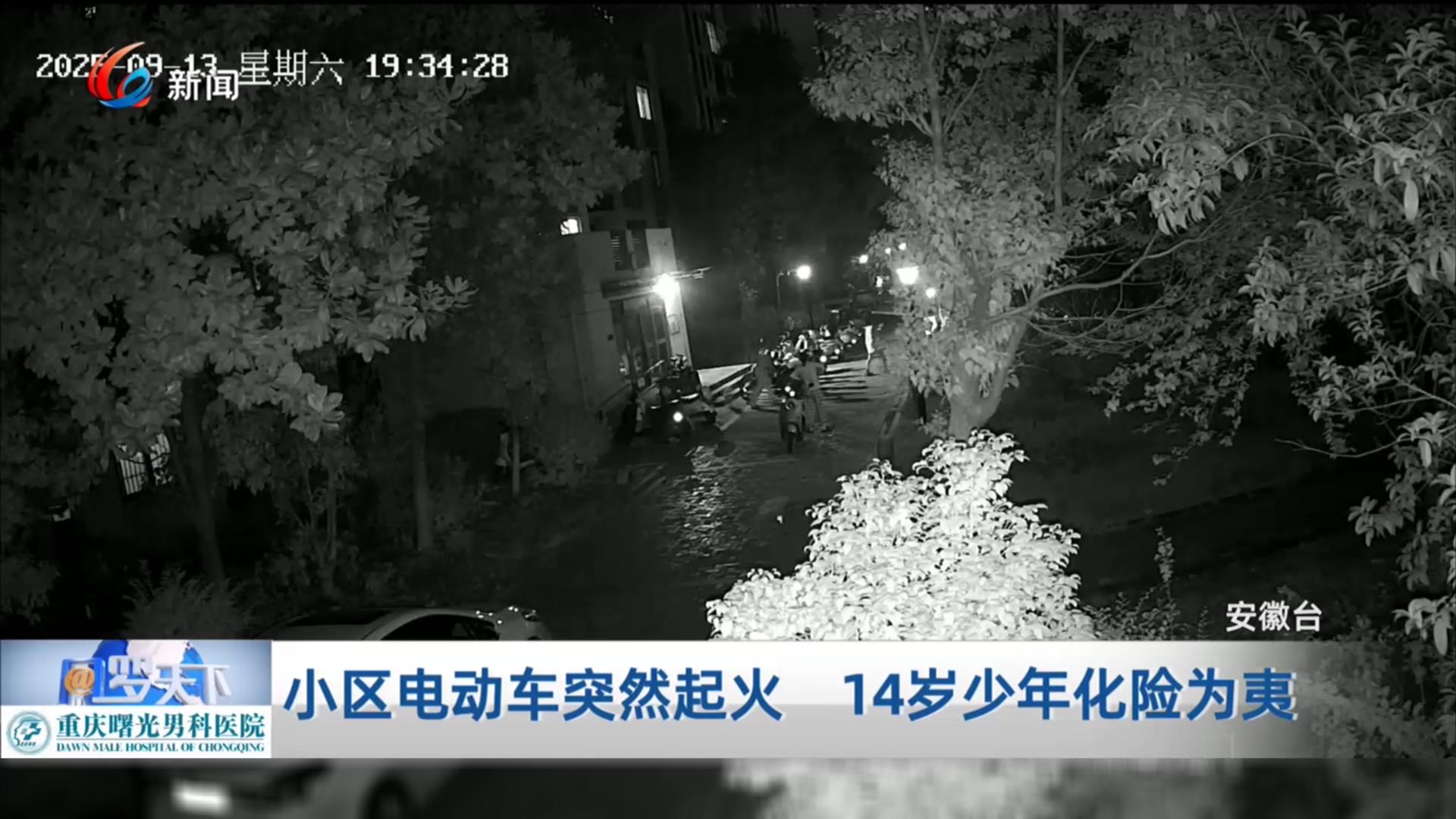 9月13号晚上7点过,安徽宣城郎溪一小区的电动车突然着火。危急时刻,一名14岁少年临危不惧,拿起楼道里的灭火器,成功扑灭明火,避免了财产损失。