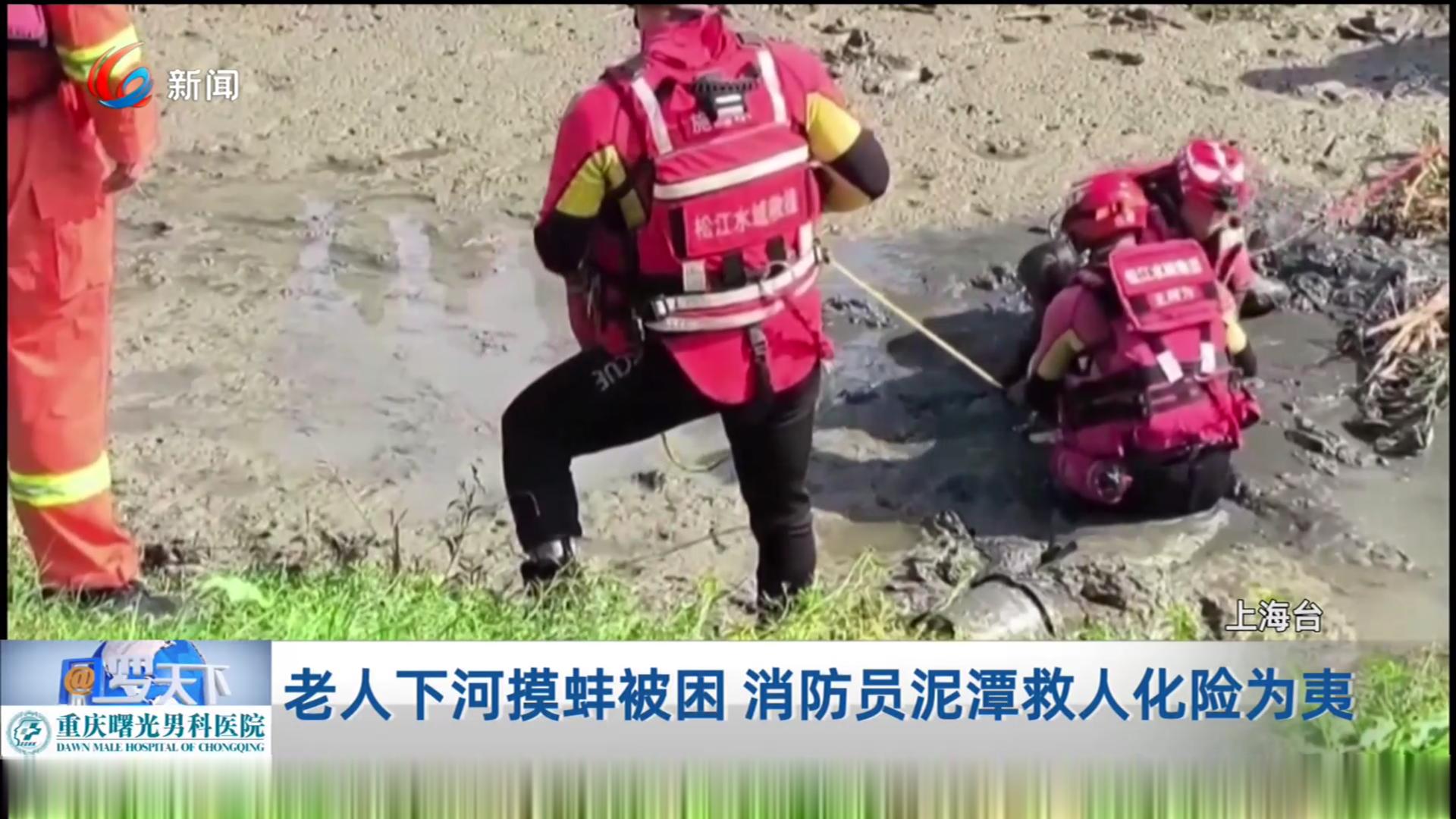 老人下河摸蚌被困 消防员泥潭救人化险为夷