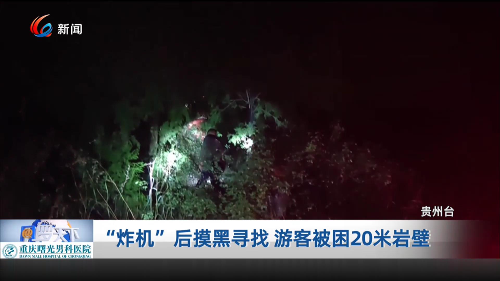 “炸机”后摸黑寻找 游客被困20米岩壁