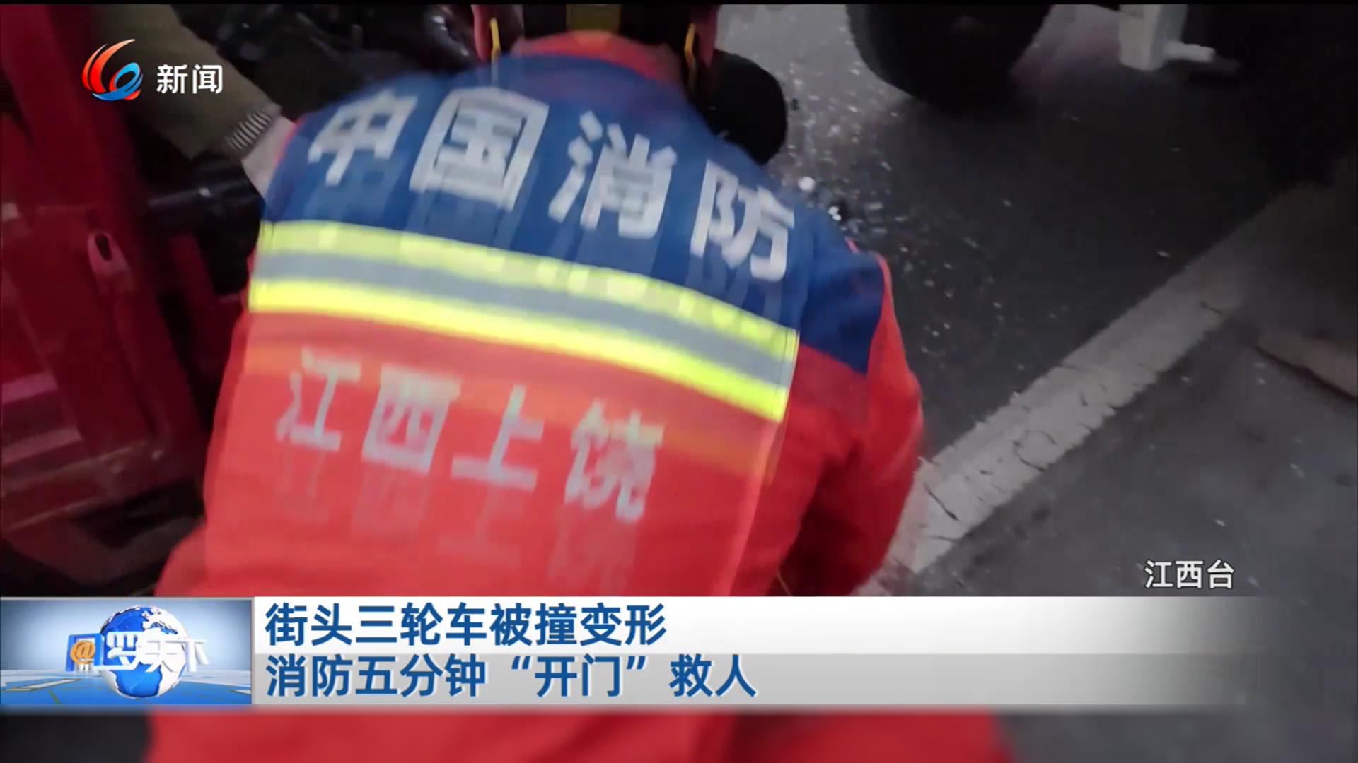 街头三轮车被撞变形 消防五分钟“开门”救人