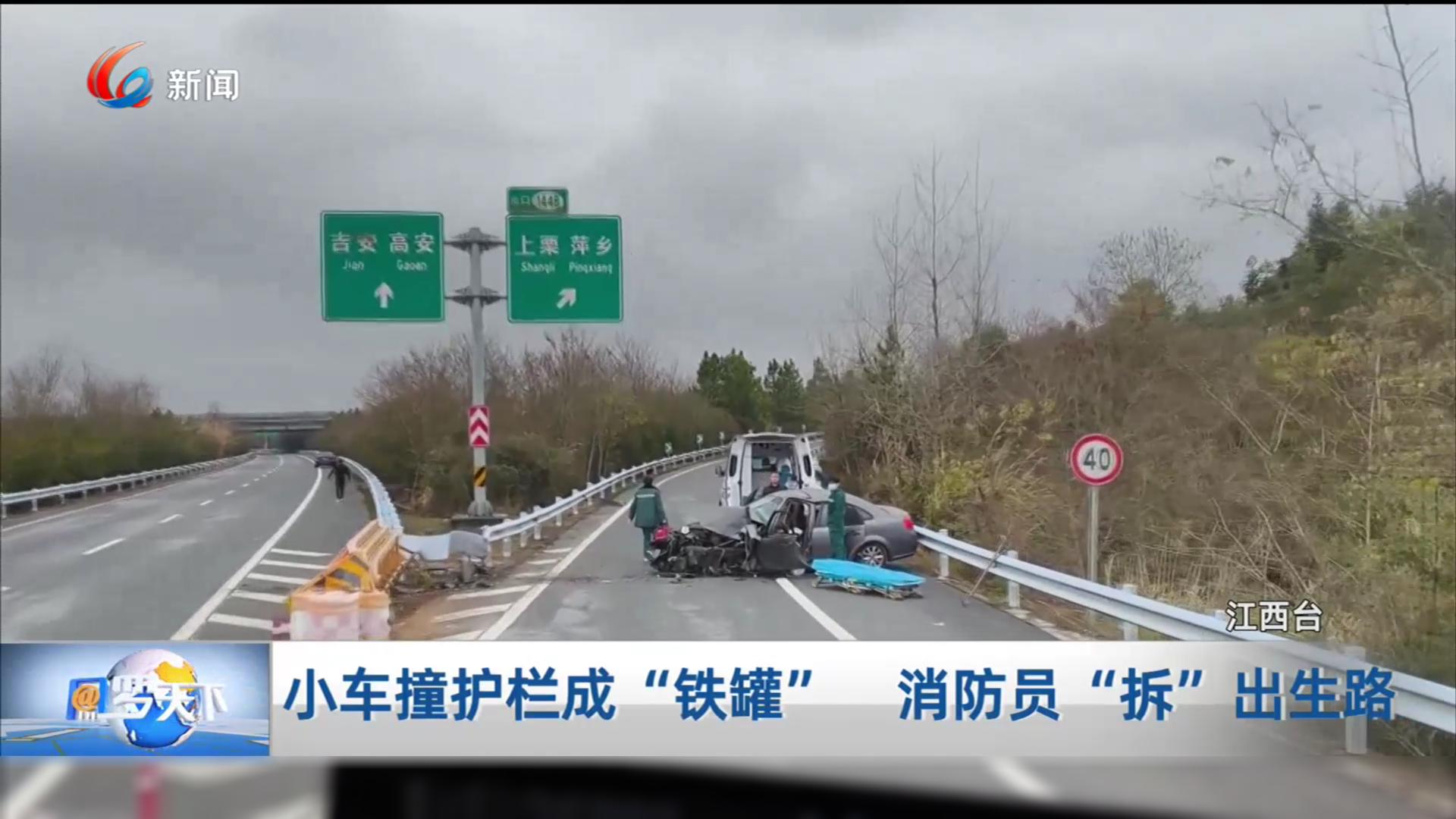 小车撞护栏成“铁罐” 消防员“拆”出生路
