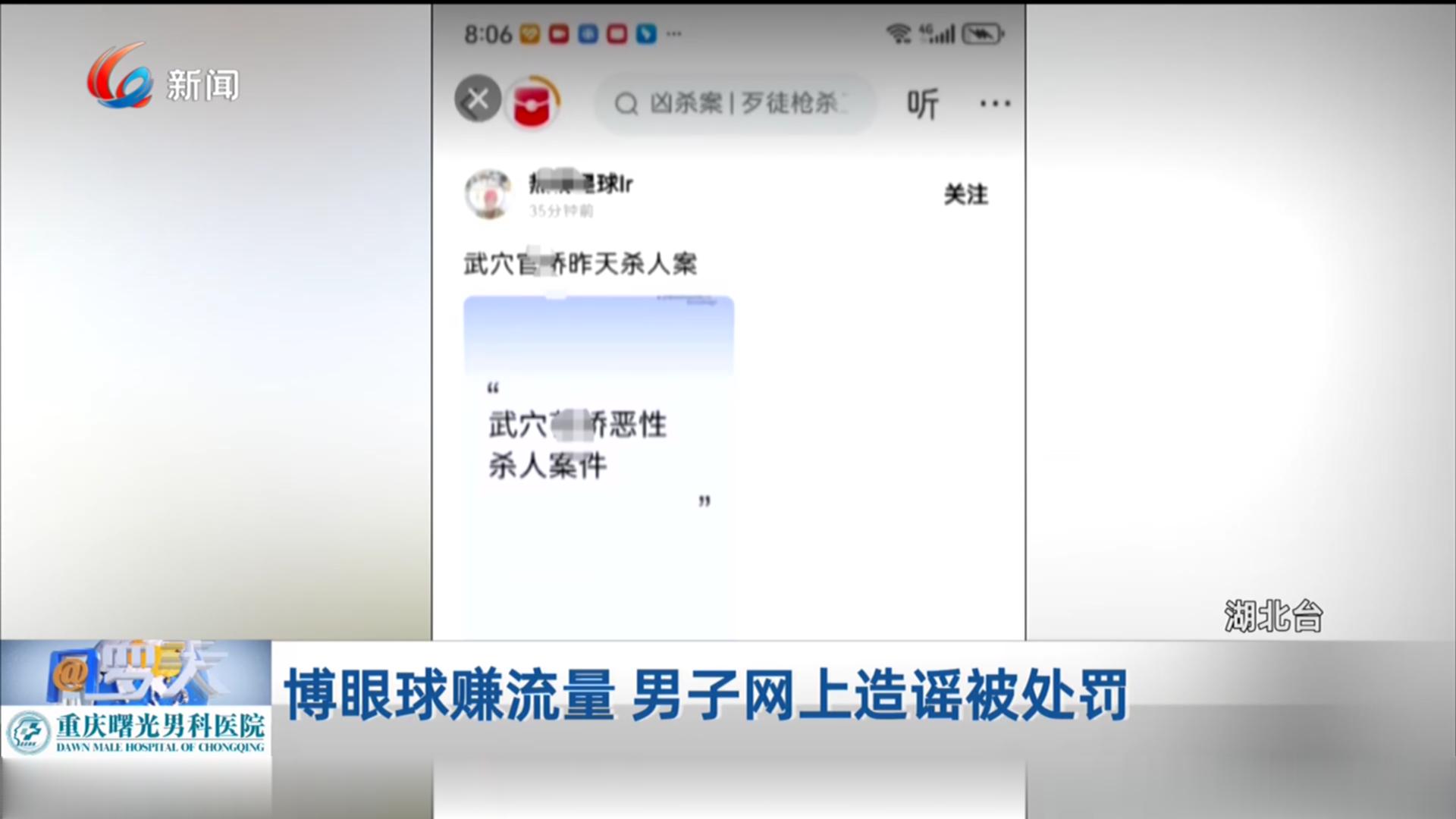 最近,一男子为了博眼球,赚流量,在网上传播谣言,说湖北某地发生恶性杀人案。一些不明真相的网民被惊悚的标题吸引,信以为真。警方发现后,第一时间进行了辟谣,并揪出了幕后的黑手。