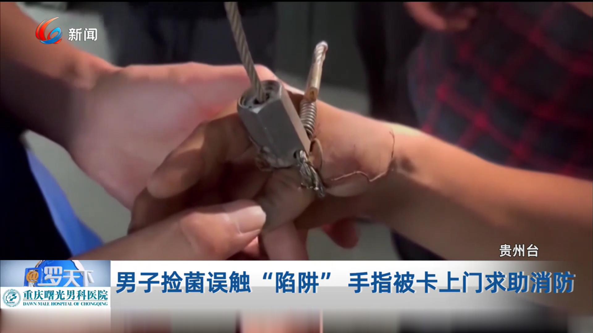接下来要说的还是和蘑菇有关,9月8日,贵州铜仁一名男子向消防求助,说在采蘑菇时,不小心触动了野猪夹子,结果自己大拇指被弹簧套卡住,出现深深勒痕。
