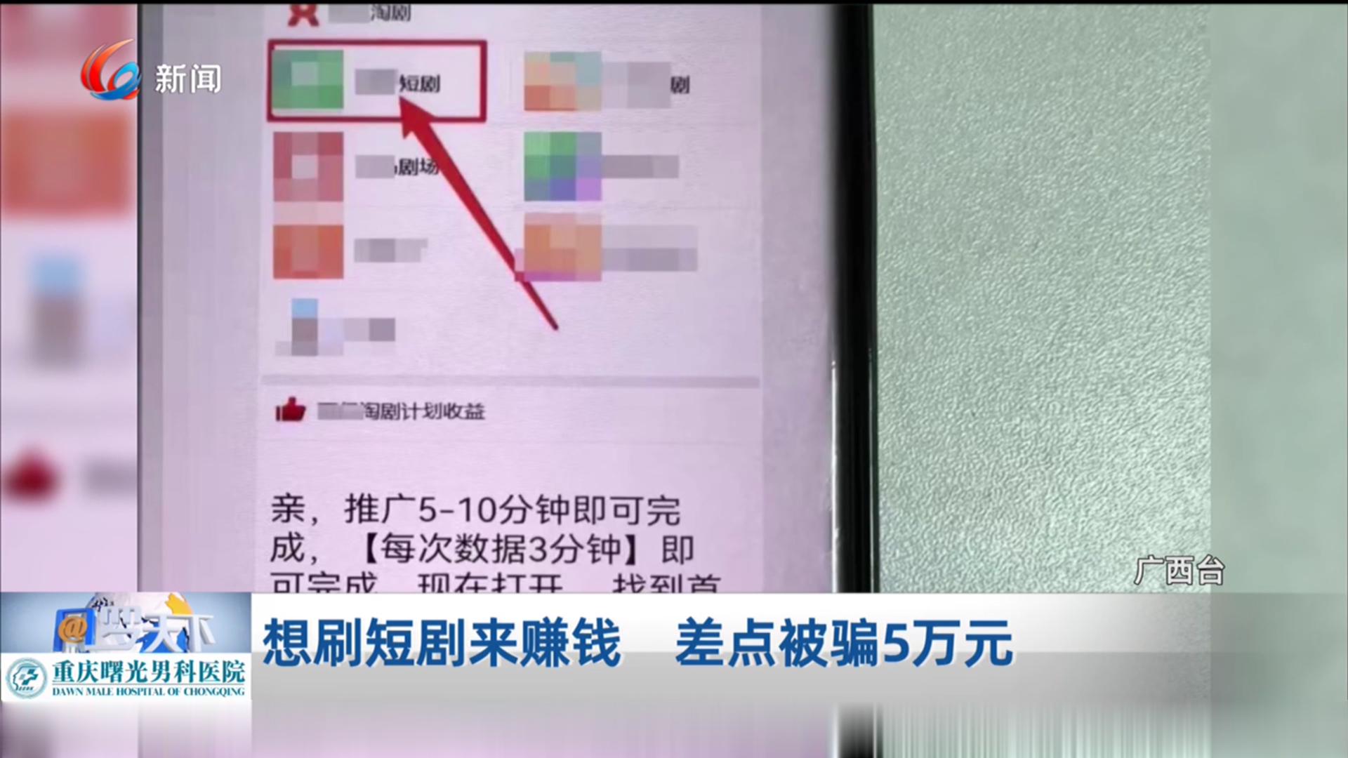 刷短剧就能轻松日赚百元,你相信吗?这类颇具诱惑性的兼职工作,其实暗藏了诈骗的陷阱。这不,广西北海就有人轻信了这个套路,差点被骗走5万元!