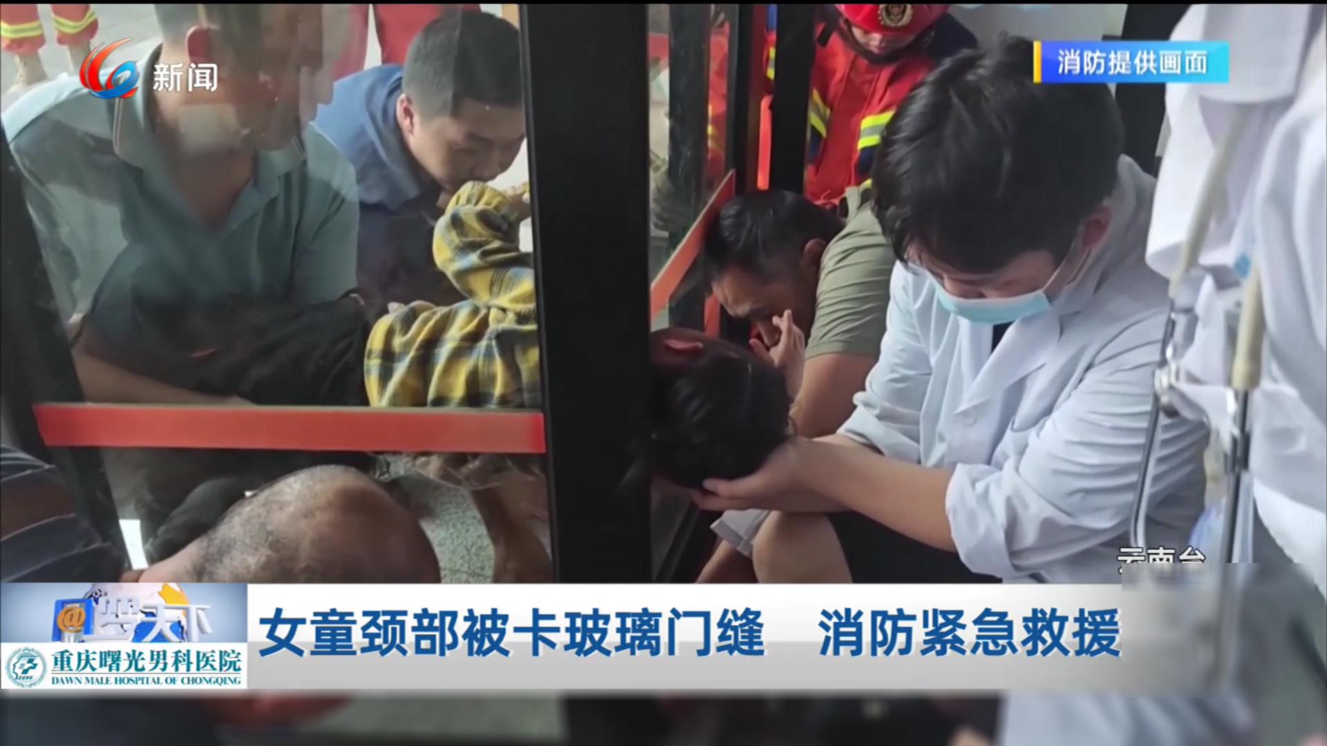 女童颈部被卡玻璃门缝 消防紧急救援