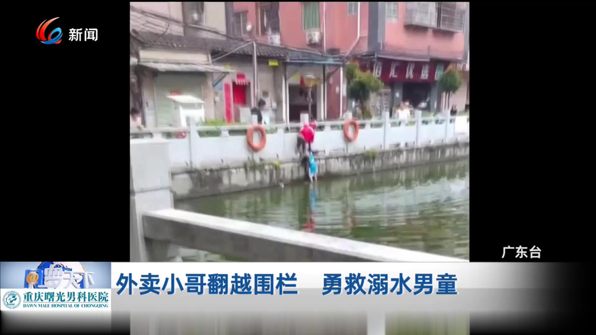 外卖小哥翻越围栏 勇救溺水男童