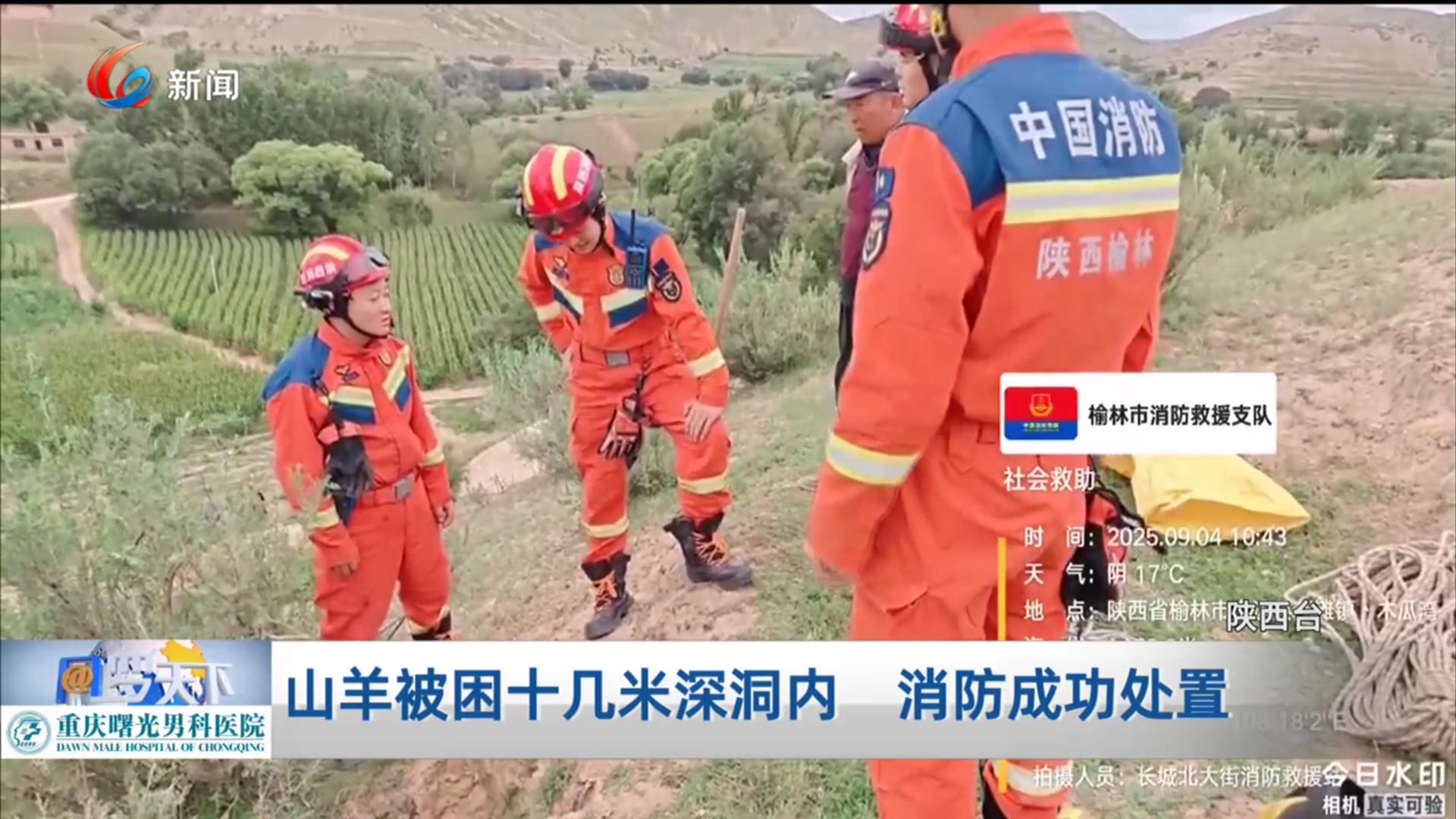 山羊被困十几米深洞内 消防成功处置