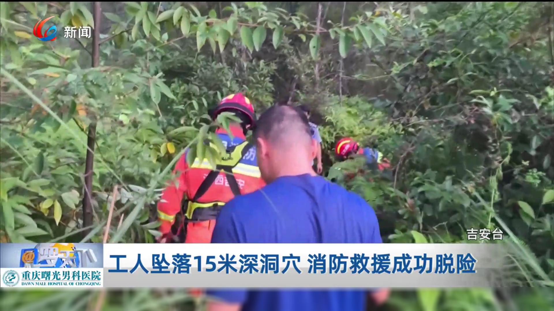 工人坠落15米深洞穴 消防救援成功脱险