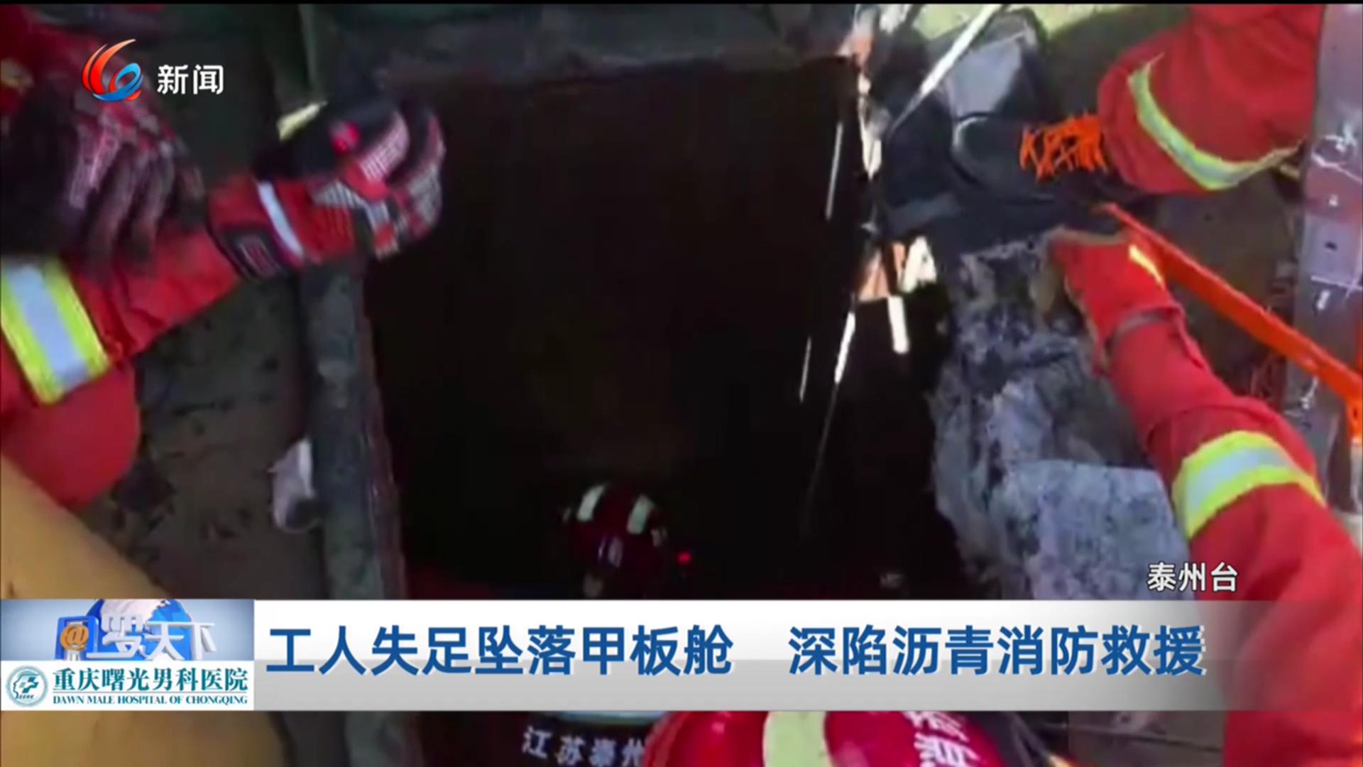 工人失足坠落甲板舱 深陷沥青消防救援