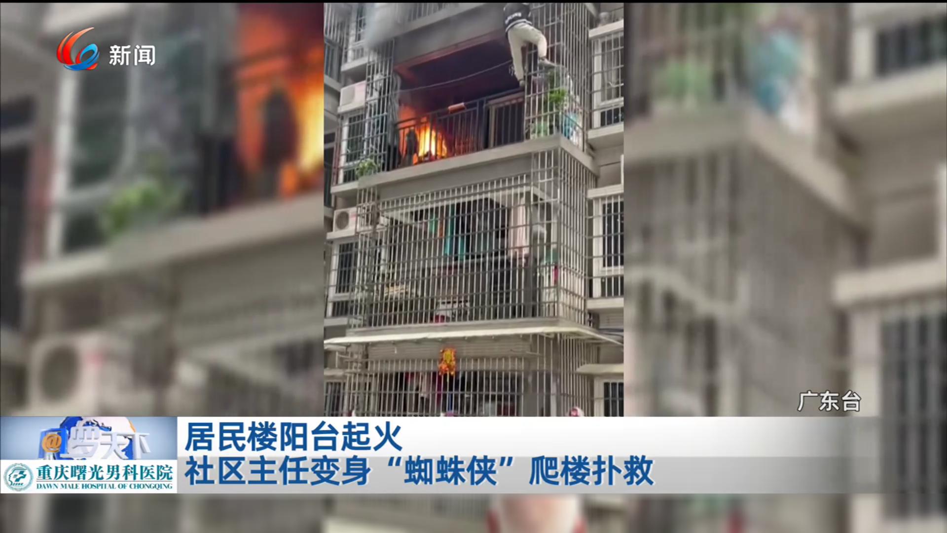 居民楼阳台起火 社区主任变身“蜘蛛侠”爬楼扑救