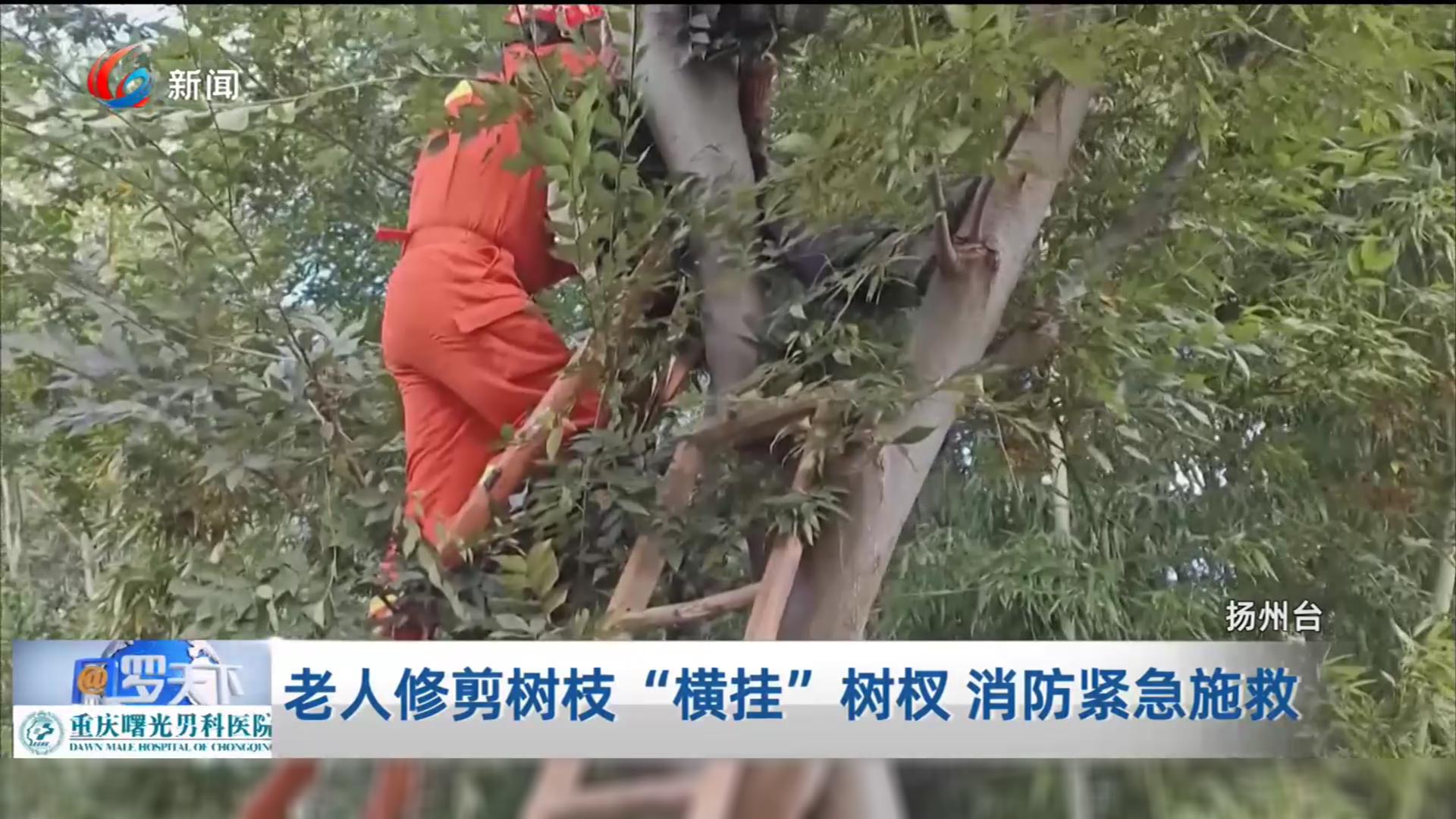 老人修剪树枝“横挂”树杈 消防紧急施救