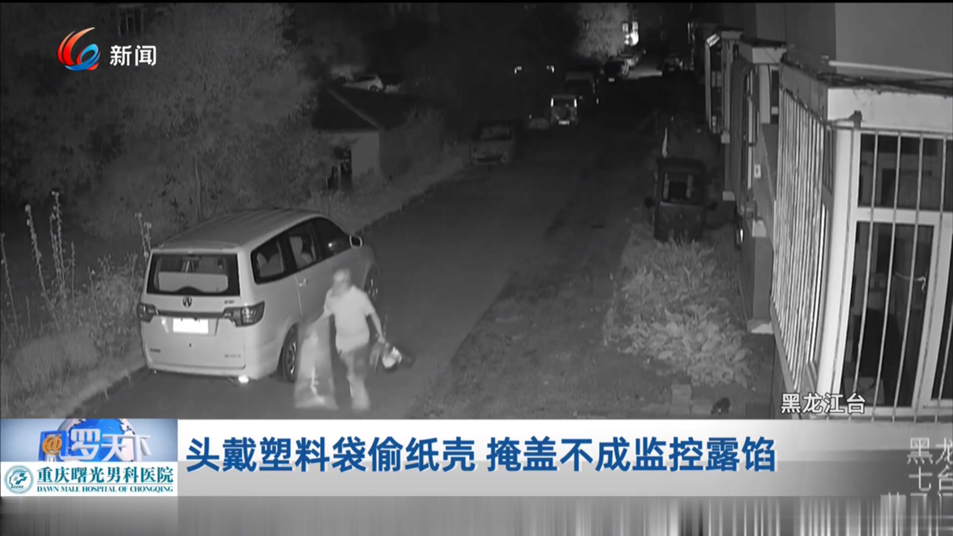 头戴塑料袋偷纸壳 掩盖不成监控露馅