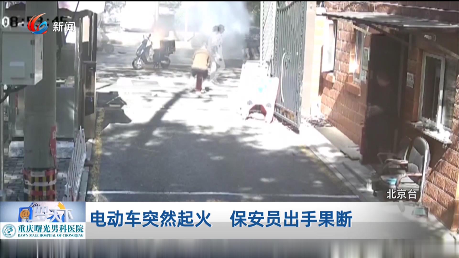前不久,在北京西城区一大院门口,一名外卖小哥的电动车突然冒烟起火,明火瞬间窜起了1米多高。危急时刻,小区保安和社区工作人员立即处置,成功化解险情。
