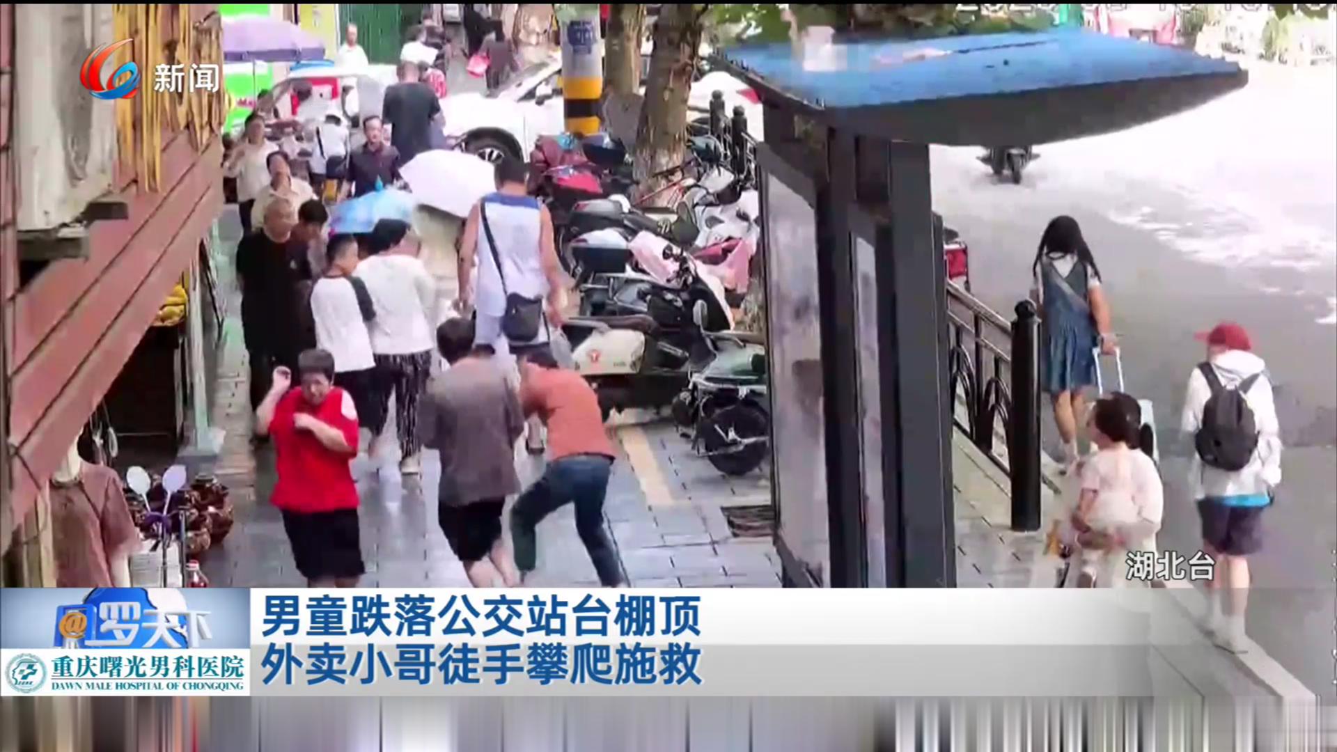 男童跌落公交站台棚顶 外卖小哥徒手攀爬施救