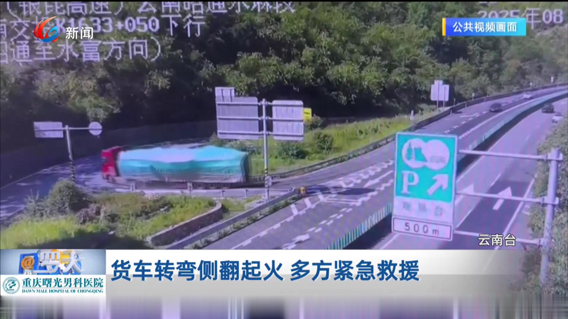 近日,在云南昭通水麻高速,一辆大货车行驶途中发生侧翻,并燃起熊熊大火。一场紧急救援随即展开。