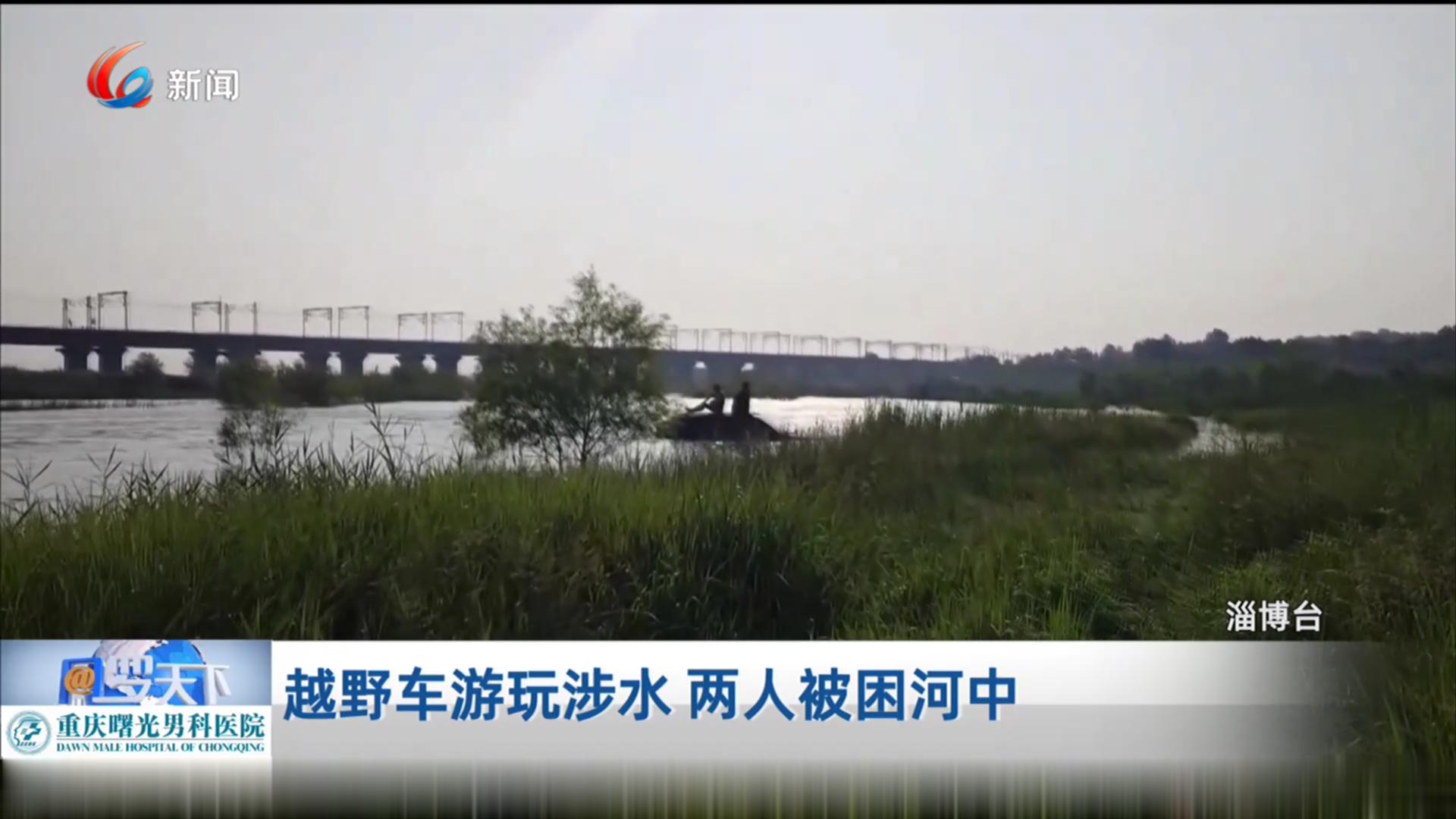 淄博市消防救援支队接到报警称,一辆越野车在河滩强行涉水,结果车辆中途熄火,导致两人被困河中。消防员接报后立即赶往现场。