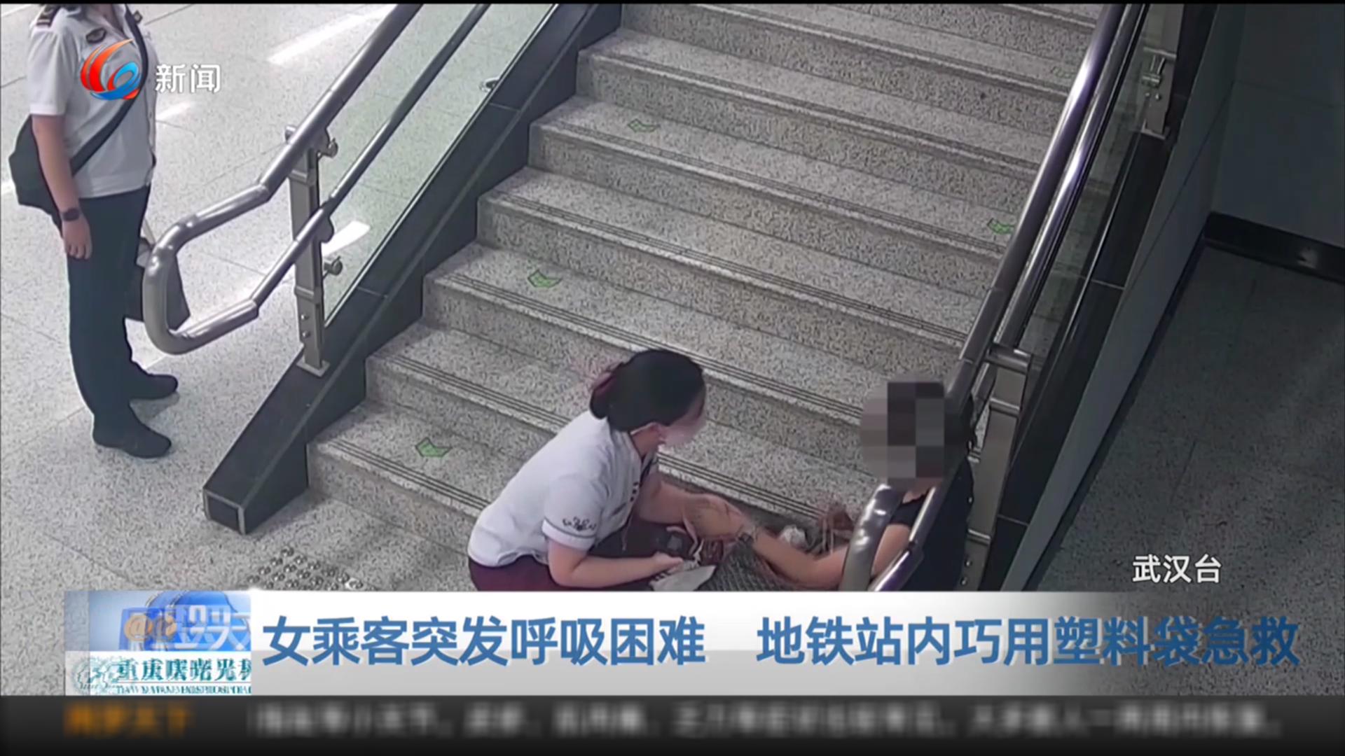 女乘客突发呼吸困难 地铁站内巧用塑料袋急救
